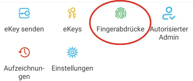 Na ekranie głównym naciśnij“Fingerabdrücke“(Odciski palców), a następnie na symbol
