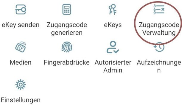 Na stronie startowej naciśnij „Zugangscode Verwaltung“ (Zarządzanie kodami dostępu), a następnie na użytkownika, który ma zostać usunięty.