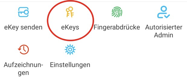 Aby zaprosić użytkowników do App naciśnij na stronie startowej "eKey senden“ (wyślij eKey).