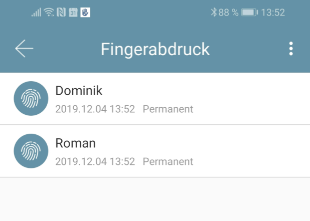 Najpierw na stronie głównej naciśnij“Fingerabdrücke" („Odciski palców“), a następnie na użytkownika, którego chcesz usunąć.