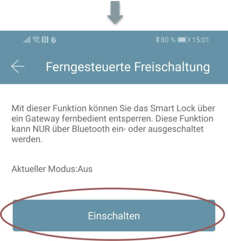 Następnie wybierz"Ferngesteuerte Freischaltung“ (Zdalna aktywacja) i naciśnij „Einschalten“ (Włącz)