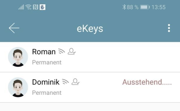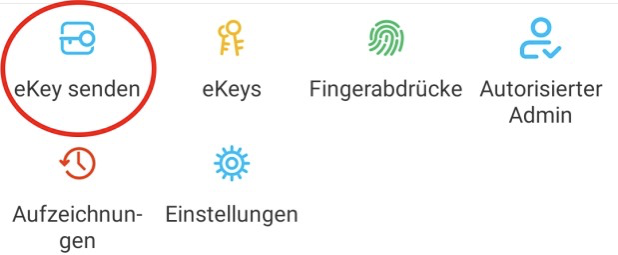 Aby zaprosić użytkowników do App naciśnij na stronie startowej "eKey senden“ (wyślij eKey).