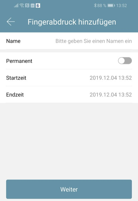 Po kliknięciu"Weiter" (“Dalej“) postępuj zgodnie z instrukcją App, aby zakodować odcisk palca.
