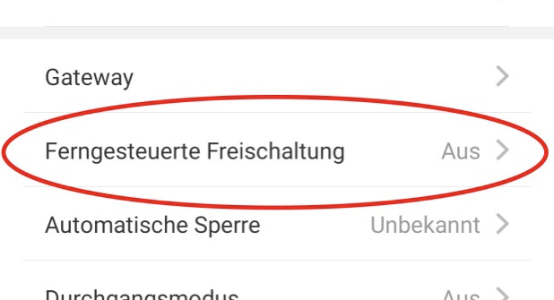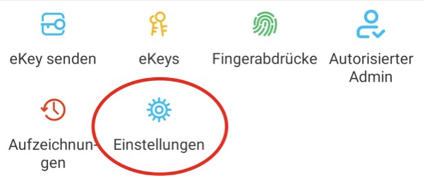 Najpierw musisz aktywować zdalne otwieranie zamka. Naciśnij na stronie głównej „Einstellungen" (Ustawienia).