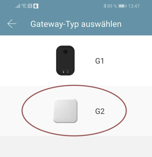 W następnym oknie wybierz "G2" jako Gateway-Typ.