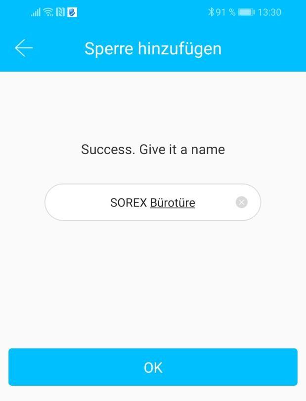 Nun können Sie für Ihr Schloss einen sprechenden Namen vergeben und die Einrichtung mit “OK” abschließen.