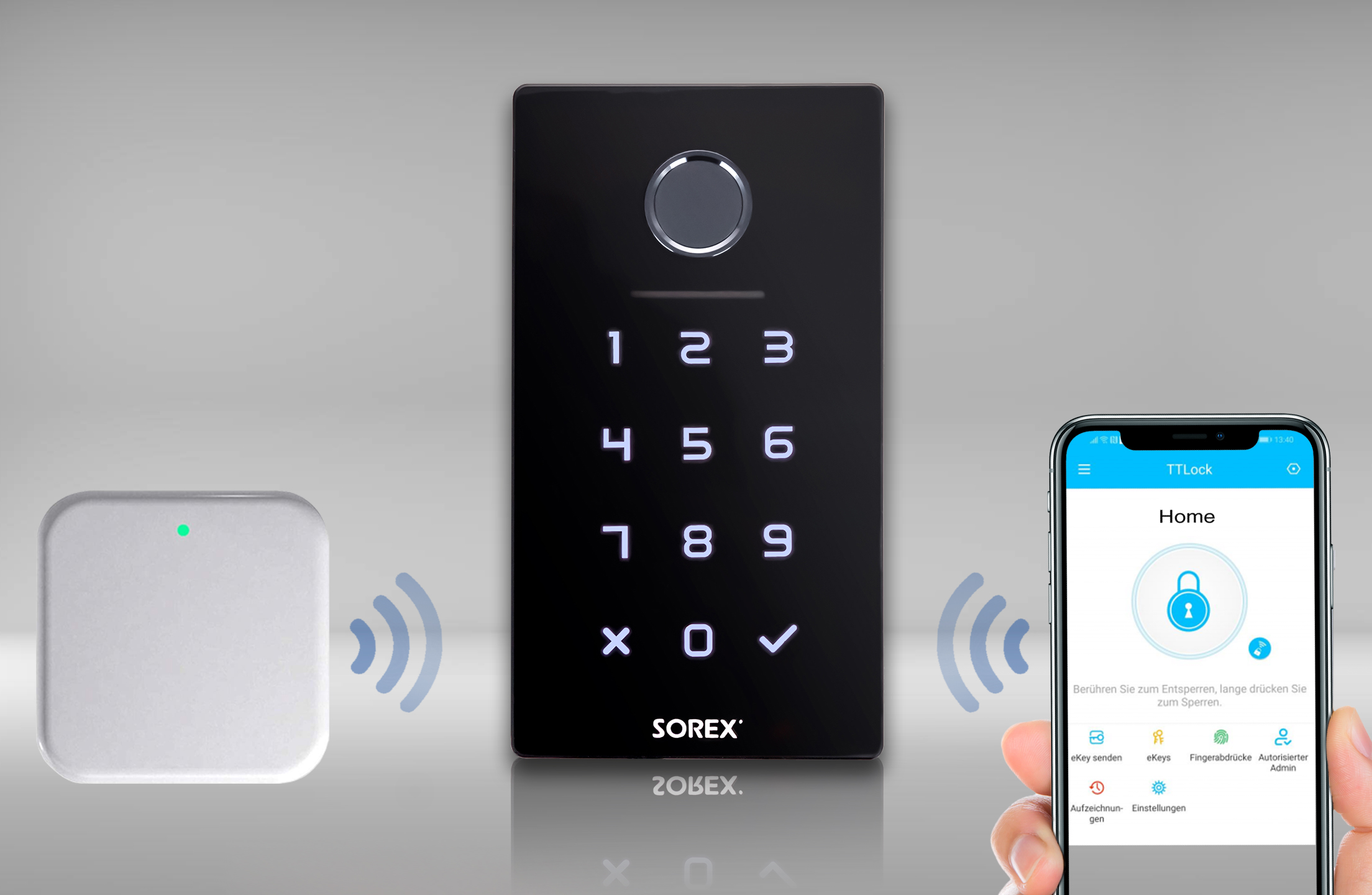 Achtung: Damit das Schloss gefunden werden kann, müssen Sie dieses aufwecken, in dem Sie einen Finger kurz an den Fingerprintsensor oder auf das Zahlenfeld halten.