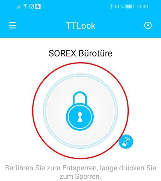 Über den großen Schlossbutton können Sie ihr Schloss innerhalb der Bluetooth Reichweite entsperren.