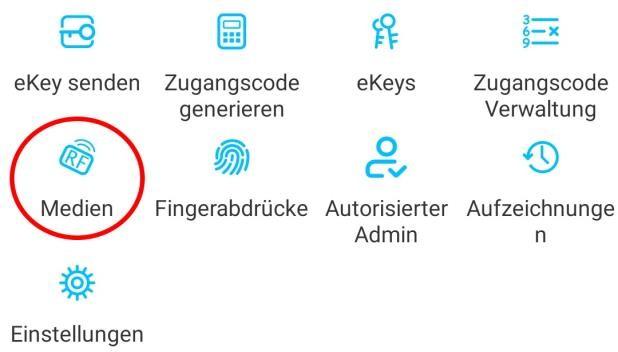 Sollte Ihr Smartphone NFC unterstützen und sie haben Ihr Türschloss mit einem Gateway verbunden, erscheint unterhalb von „Medium hinzufügen“ auch der Punkt „Karte aus der Ferne hinzufügen“. Über diese Option können Sie gegebenenfalls
