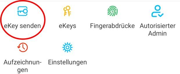 Um Benutzer zur App einzuladen, drücken Sie bitte zunächst auf der Startseite auf "eKey senden".