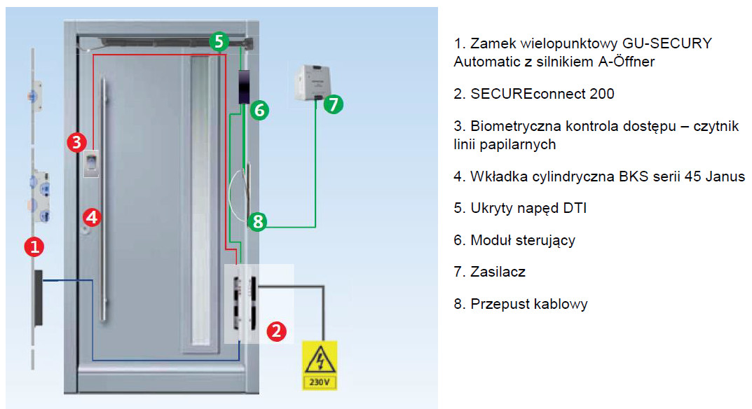 Montaż blueMatic EV4/EAV4+ z "Skaner linii papilarnych IDENCOM Biokey INSIDE Mini X" (od strony skrzydła).