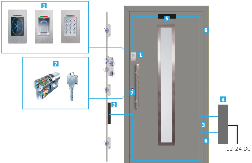 Czytniki linii papilarnych, klawiatury numeryczne i RFID są kompatybilne z zamkami Iseo.