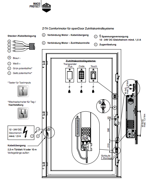 Zasada podłączenia tych nowych zamków z czytnikami jest identyczna jak dla innych modeli zamków Maco, a dokonuje się jej przy użyciu złączek typu JST-Stecker.
