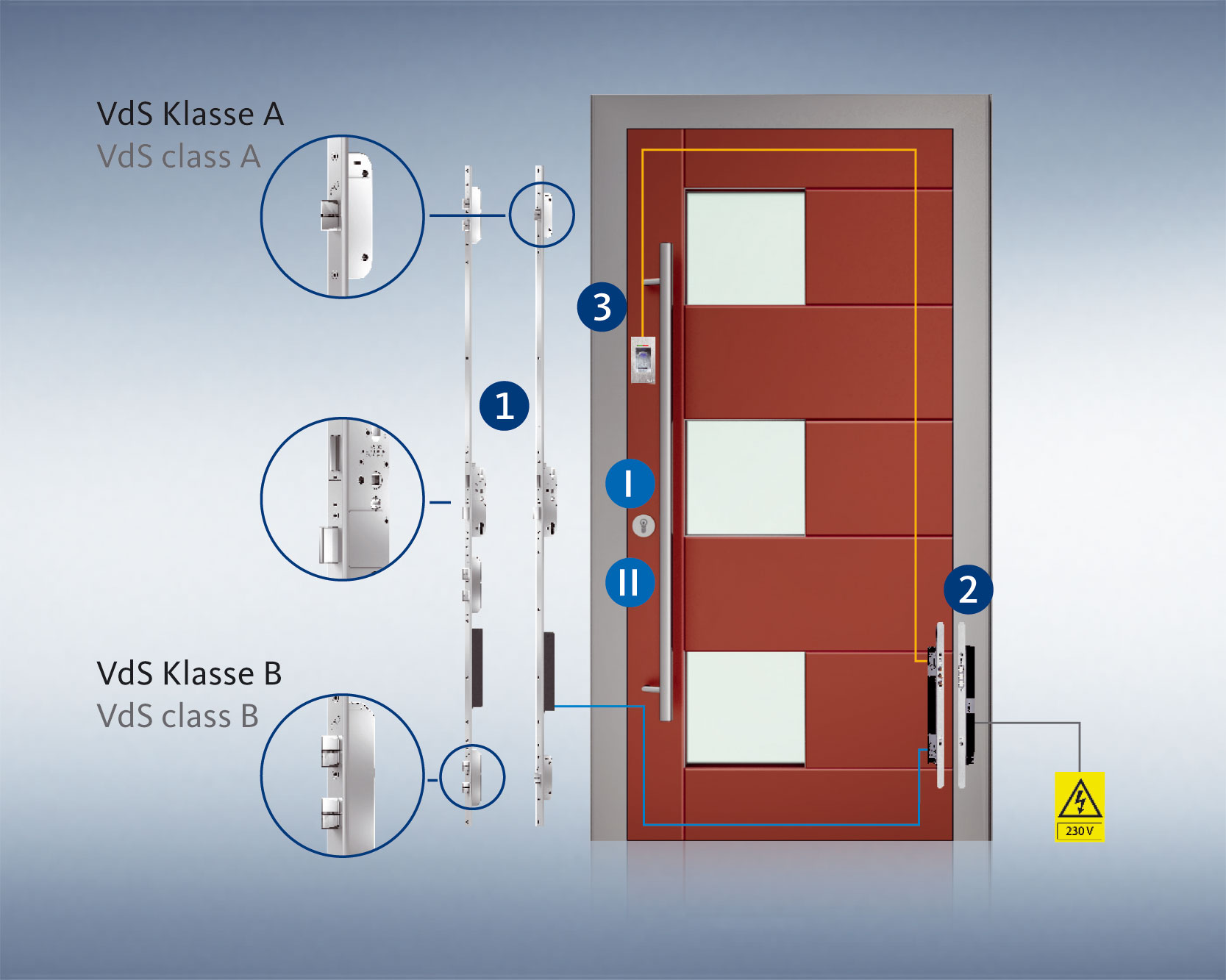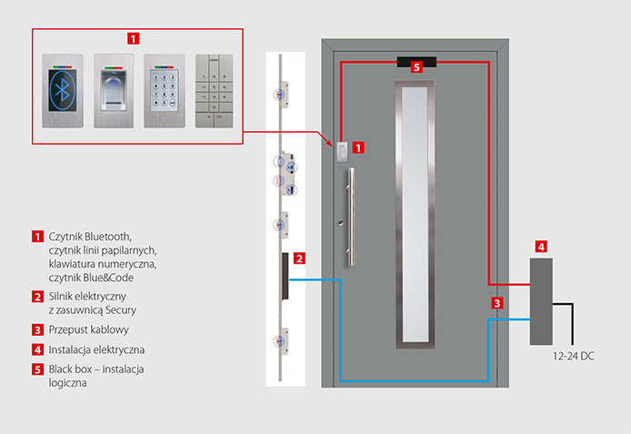 Czytniki można stosować do zamków serii 820 oraz 821. Są to zamki wielopunktowe, samo ryglujące z silnikiem.